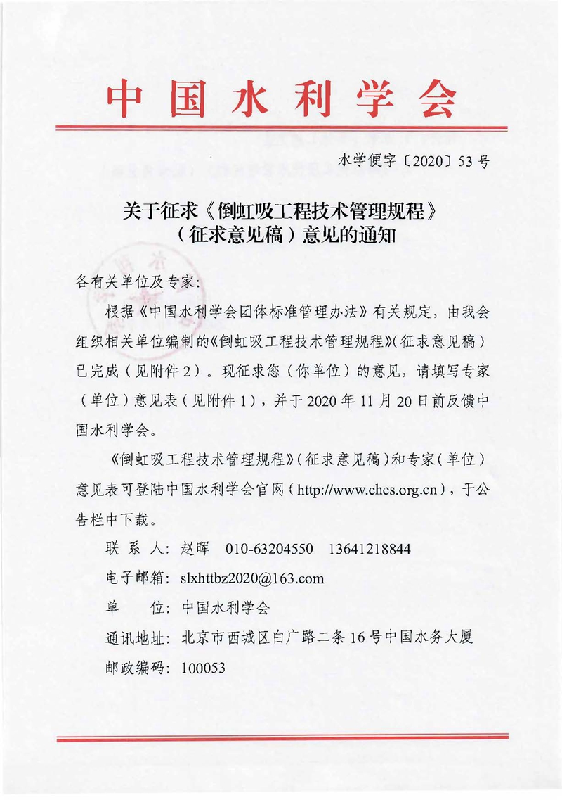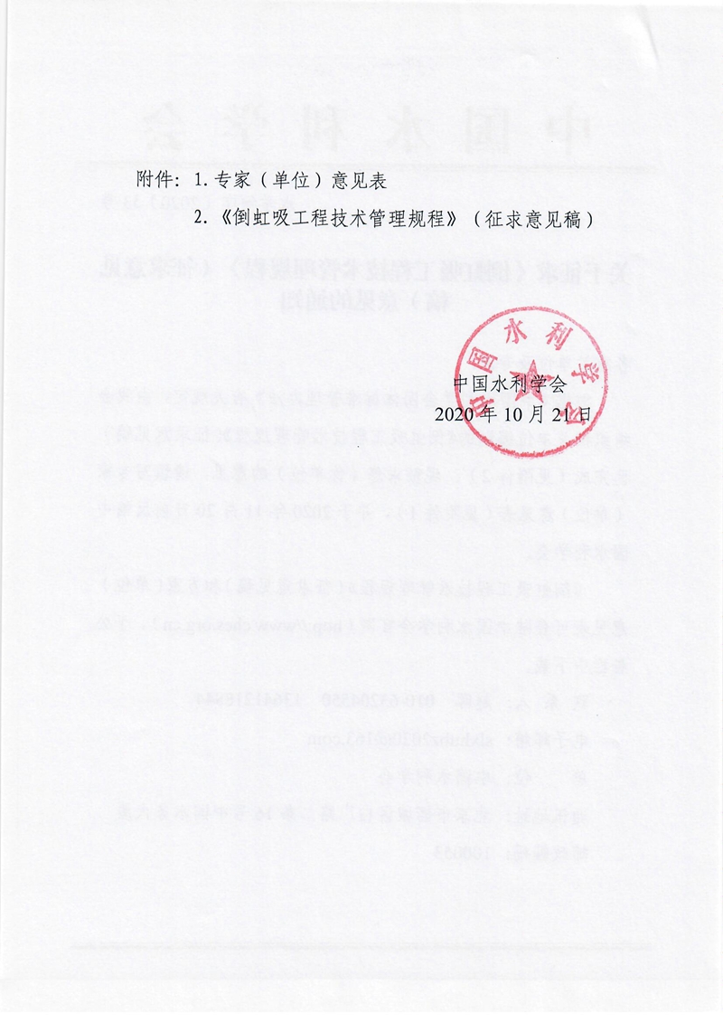 关于征求《倒虹吸工程技术管理规程》(征求意见稿)意见的通知