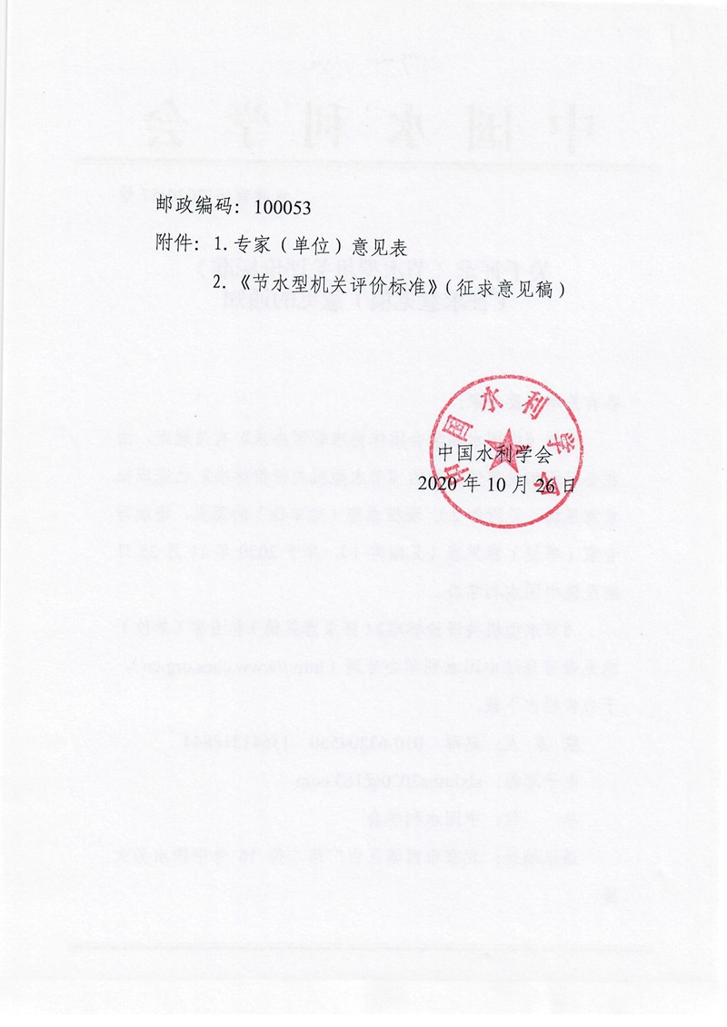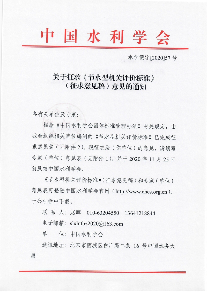 关于征求《节水型机关评价标准》(征求意见稿)意见的通知