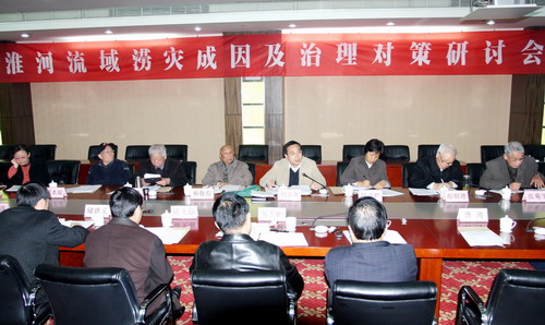 会上,淮河研究会就“淮河流域涝灾成因评价及应对措施研究”取得的成果作了专题汇报。由于气候、地理环境和人类活动的因素,淮河流域一方面水资源短缺,一方面洪灾和因洪致涝严重。新中国成立以来,党中央、国务院高度重视治淮工作,已初步建成了淮河防洪除涝综合体系,防洪能力不断增强,大大减轻了洪涝灾害损失。但仍然不能满足人民生活水平日益提高的需求,还需要进一步完善除涝体系的建设。尤其是开展沿淮地区平原洼地的综合治理,已成为全社会广为关注的焦点之一。与会专家就如何解决和降低涝灾或因洪致涝造成的损失畅所欲言,各抒己见。从流域涝灾成因形成机理、沿淮地区和平原洼地治理对策、洪水资源利用、行蓄洪区政策研究和经济结够调整、农田排水系统改造等方面进行了深入探讨,提出了很多建设性的宝贵意见。