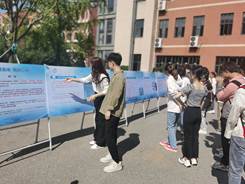 9月17日,组织科普志愿者走进沈阳农业大学水利学院,在学院第五食堂前张贴科普日主题海报,布设“护好大水 喝好小水”展板18块。志愿者们为大家详细讲解了展板上的内容,包括我国的水资源现状、存在的问题及如何正确的喝水等方面的知识,让在校的大学生都能够自觉地加入到节水的行列中,珍惜水资源,保护水资源,节约水资源。