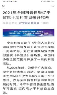 9月11日是全国科普日暨辽宁省第十届科普日,主题为:百年再出发 迈向高水平科技自立自强。在9月11—18日期间,我会开展线上线下相结合的科普系列宣传活动。