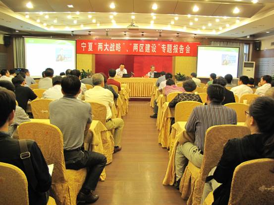 报告会上,汪建敏研究员站在国家大战略、宁夏新使命的高度,以“宁夏实现跨越发展的新机遇――《宁夏内陆开放型经济试验区发展规划》解读”为题,从试验区的定位、申办的过程、试验区规划的主要内容、规划的实施、办好试验区的战略性思考等方面,对以建设内陆开放型经济试验区为突破口,推动宁夏沿黄经济区建设和百万扶贫攻坚战役的实施进行了深入的讲解。对开放型经济试验区的四大战略定位、三大平台、六大基地、四大中心、四大示范区、五大政策进行了详细分析。与会人员受益匪浅。