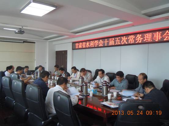 2013年5月24日,甘肃省水利学会十届五次常务理事会议在兰州召开。会议由省水利学会副理事长兼秘书长吕来瑞主持。十届五次常务理事会议主要议题是:1、研究甘肃省水利学会第十一次会员代表大会及换届选举有关事宜。2、传达甘肃省科协第七次代表大会会议精神;学习省委书记王三运在省科协七次代表大会上的讲话。3、省水利学会秘书处向常务理事会报告2012年工作情况。常务理事会对学会2012年按照中国水利学会安排进行会员重新登记、按照民政部门要求进行评估、开展学术交流与培训等工作给予了充分肯定。4、会议确定2013年全省水利学会秘书长工作座谈会于六月中下旬召开。会议主要内容:传达科协七次代表大会会议精神,贯彻落实省水利学会十届五次会议精神,研究安排2013年学会工作。5、经常务理事会研究,对三个连续三年不参加学会活动,不缴纳团体会费的单位同意其自动离会。6、会议研究批准“兰州资源环境职业技术学院水利系”为甘肃省水利学会团体会员单位。