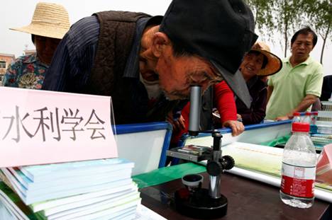 北京市水科学技术研究院为当地村民准备了显微镜,让乡亲们亲眼观测分析水样,亲身体会家乡水如此的清洁是来之不易的,是必须尽力保护的。临近村儿的村民夏名利大爷说:“虽然靠着白河,每天听到哗哗的流水声,更要想着城里里还缺水儿呢,以后要会用水、少用水”。