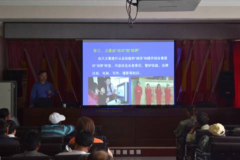 启动仪式前的5月16日,来自北京市郊区水务事务中心高级工程师丁建新,为千家店镇100余名管水员进行了“爱家乡爱水务 农村管水员技术培训”,并且给这些农村的水务同行带去了许多专业读本,还发放了《农村安全用水顺口溜》科普读物。长寿营村的管水员张殿义情不自禁地念出声来“节水推出新办法、计量宜用IC卡、此卡用前先充值、费尽则把水源卡”,他表示IC卡节水省电效果好,回去就在村里搞起来,生产生活用水全面管理到位。