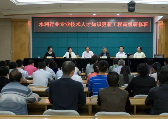 为全面推进最严格水资源管理制度的实施,做好全疆水资源管理、节约和保护工作,提高我区水资源管理水平,进一步推进节水型社会建设,2013年5月20日―24日在乌鲁木齐市,由自治区人社厅、水利厅主办,新疆水利学会承办 《水利行业专业技术人才知识更新工程高级研修班》,研修班主要内容是:“新疆实行最严格水资源管理关键技术研究的相关内容”。全疆各州、市、地水利(务)局技术负责人,自治区有关涉水事务单位、行业协会具有高级职称以上的技术人员60余人参加了培训。