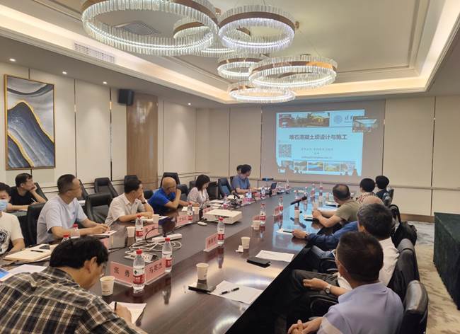 现场参会专家与金锋教授以及北京华石纳固科技有限公司李风亮董事长,就堆石混凝土坝相关技术问题展开了交流与讨论,多家设计单位的专业人员进行了线上提问,目前层面结合是堆石混凝土坝抗渗能力里最薄弱的环节,需严格控制层面的施工工艺;金峰教授和李风亮董事长积极答疑,详细讲解,现场气氛热烈。本次交流会对于促进行业交流,推动堆石混凝土坝在新疆的发展发挥重要作用。