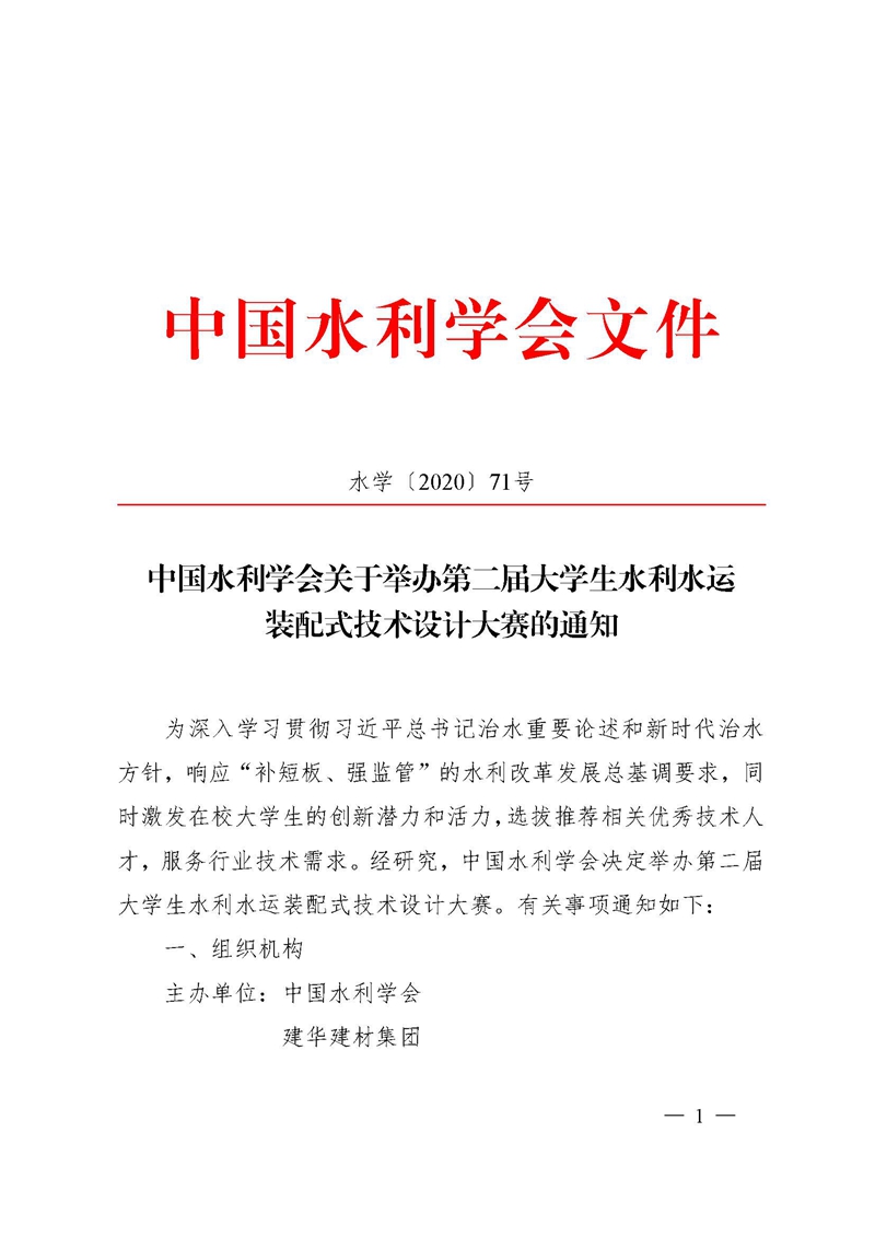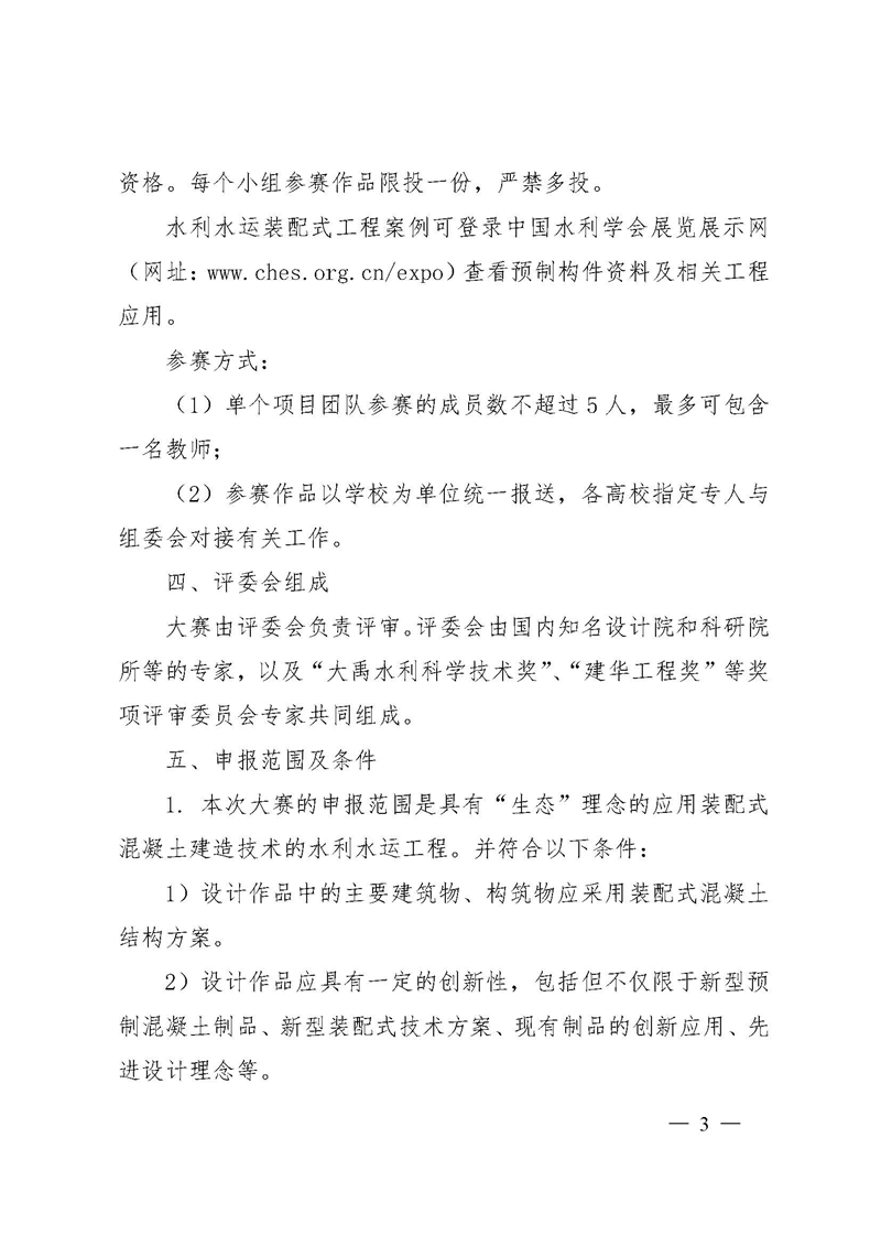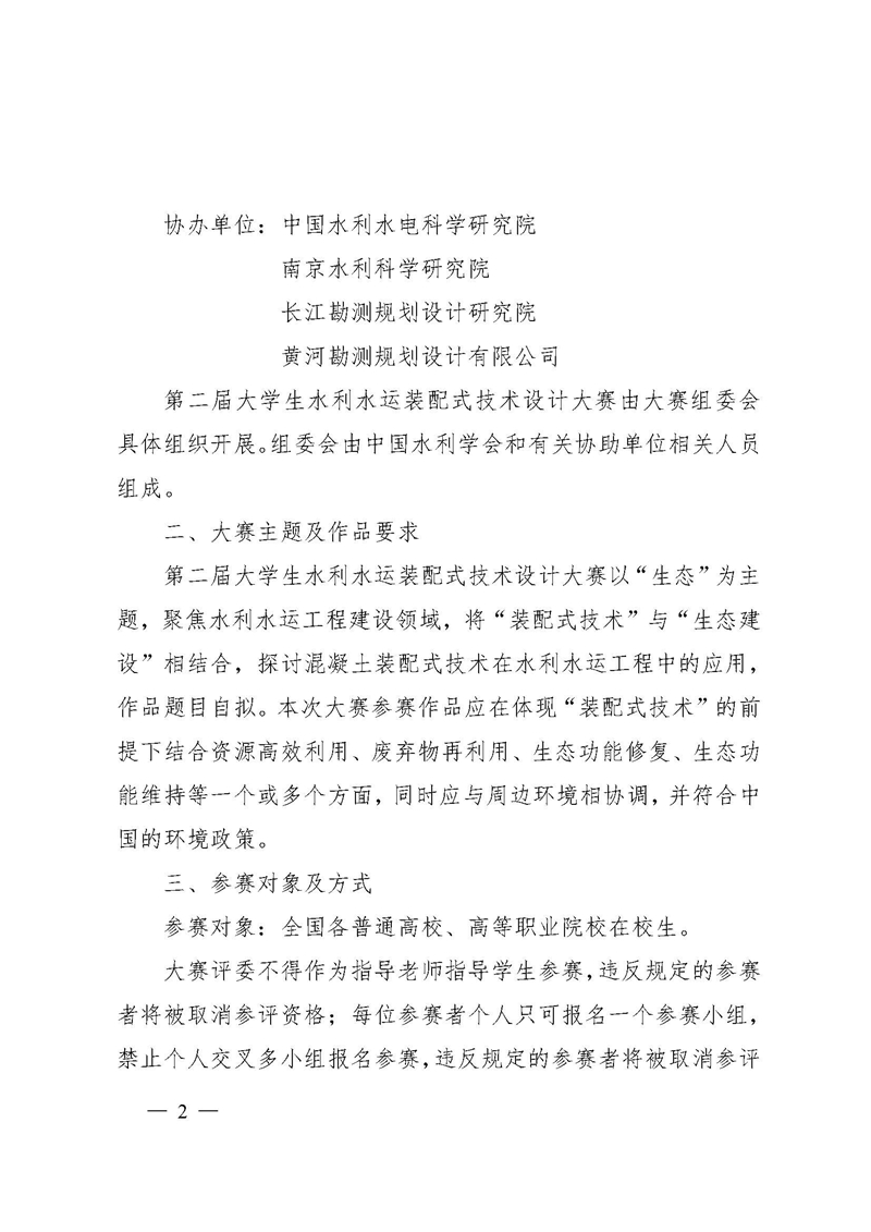 中国水利学会关于举办第二届大学生水利水运装配式技术设计大赛的通知