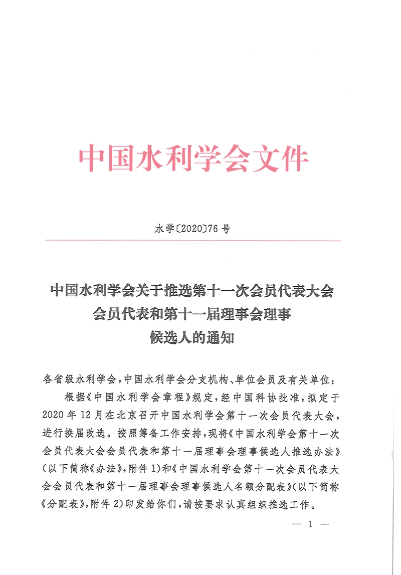 中国水利学会关于推选第十一次会员代表大会会员代表和第十一届理事会理事候选人的通知